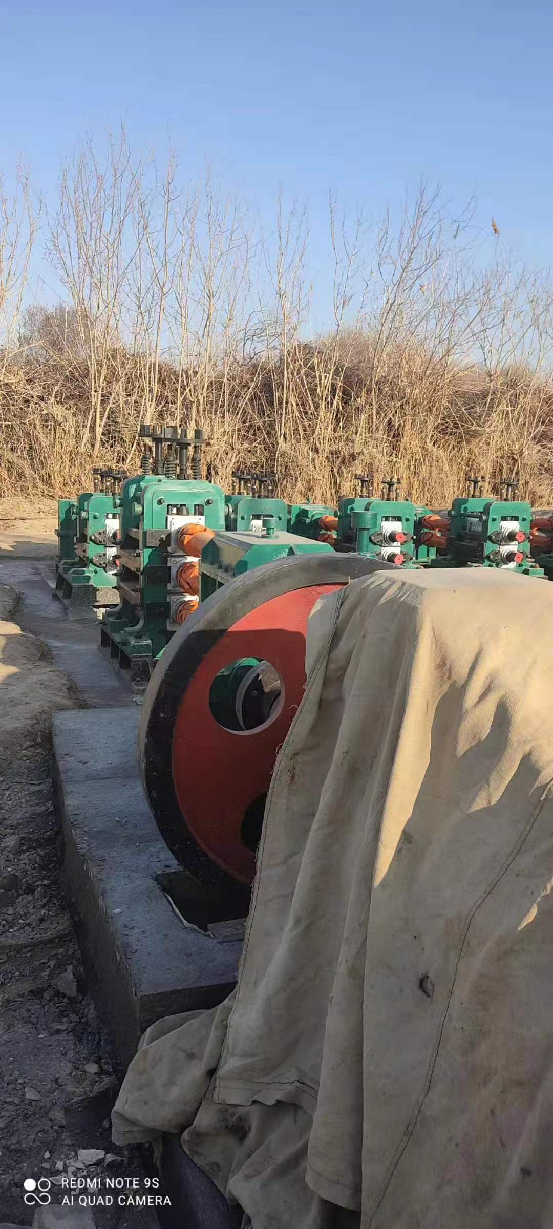 序號 名稱 數(shù)量 1 φ250三輥軋機(jī);中心距250mm;輥面長度600mm 1 2 主電機(jī);P=145KW;直流電機(jī) 1 3 飛輪組;飛輪φ1500mm 1 4 三輥軋機(jī)減速機(jī) ZD50 1 5 三軸齒輪機(jī)座;A=250MM 1 6 萬向節(jié)SWC250 3 7 聯(lián)軸器 1 8 φ220軋機(jī)電機(jī);P=55KW 7 9 φ220二輥軋機(jī);中心距220mm;輥面長度450mm 7 10 連軋機(jī)聯(lián)合減速機(jī)ZD30 7 11 萬向節(jié) 14 12 成品輸送輥道 長度14M 1 13 冷床 長度20米 1 客戶現(xiàn)場安裝照片